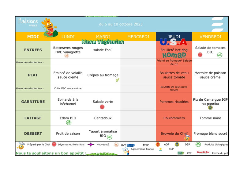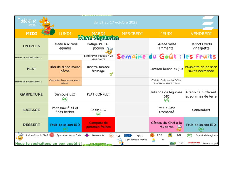 MENUS SEPTEMBRE - OCTOBRE 2025